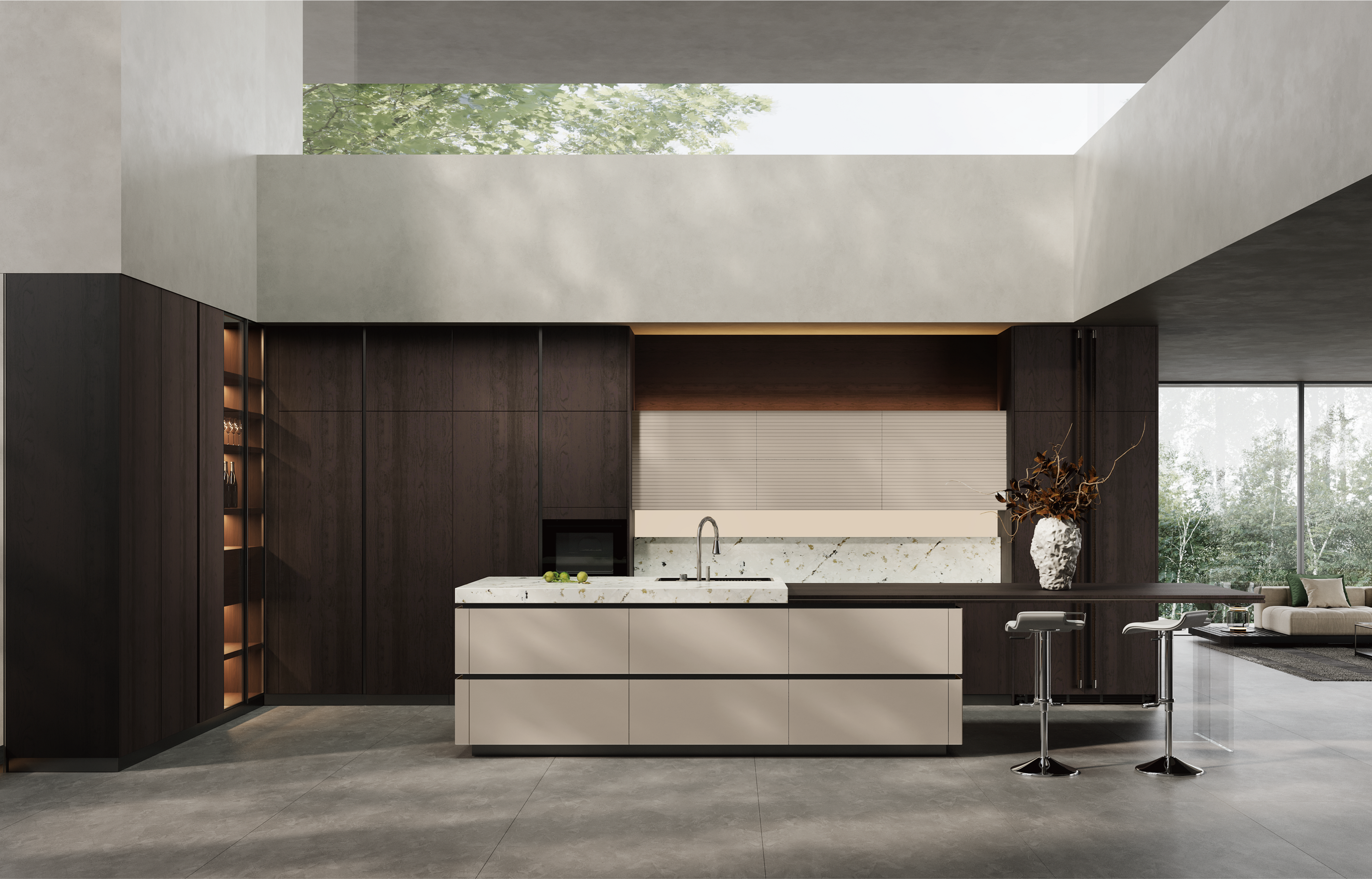 通过抖圈厨柜量体裁柜,定制出适合主厨下厨的烹饪区和洗涤区的舒适高度。